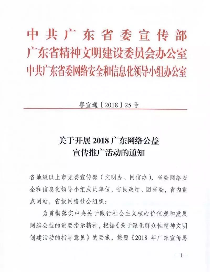 關(guān)于開展2018廣東網(wǎng)絡(luò)公益宣傳推廣活動的通知