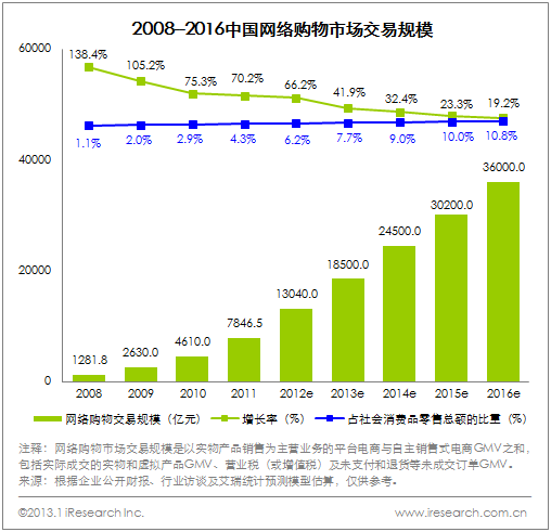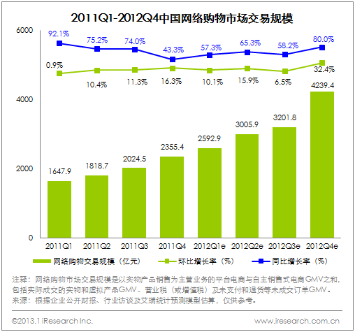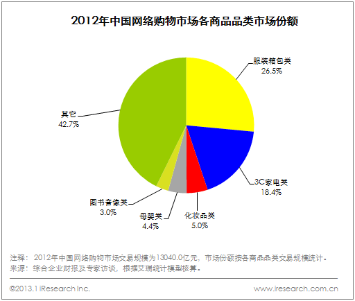 2012年中國網(wǎng)絡(luò)購物市場交易規(guī)模超1.3萬億