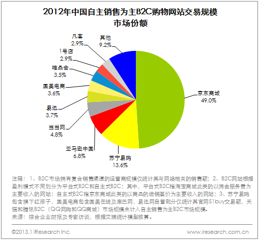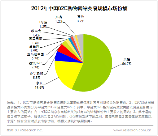 2012年中國網(wǎng)絡(luò)購物市場繼續(xù)快速發(fā)展。艾瑞咨詢數(shù)據(jù)顯示,2012年中國網(wǎng)絡(luò)購物交易規(guī)模突破10000億元大關(guān),達(dá)到13040.0億元;從網(wǎng)購結(jié)構(gòu)來看,B2C占比達(dá)到29.7%,呈持續(xù)增大趨勢;競爭態(tài)勢方面,含平臺式B2C市場天貓保持領(lǐng)先,自主銷售為主B2C市場京東優(yōu)勢明顯。 市場規(guī)模:2012年中國網(wǎng)絡(luò)購物市場交易規(guī)模增長66.2%,達(dá)到13040億元 艾瑞咨詢數(shù)據(jù)顯示,2012年中國網(wǎng)絡(luò)購物市場交易規(guī)模達(dá)13040.0億元,較往年增長66.2%,在社會消費(fèi)品總零售額的占比達(dá)到6.2%。從季度數(shù)據(jù)來看,2012Q4由于受“雙11”、“雙12”等促銷活動影響,中國網(wǎng)絡(luò)購物市場交易規(guī)模高達(dá)4239.4億元,同比增長80.0%,環(huán)比增長32.4%。 艾瑞咨詢認(rèn)為,中國網(wǎng)絡(luò)購物市場從2012年后開始逐漸進(jìn)入成熟期。未來幾年,隨著傳統(tǒng)企業(yè)大規(guī)模進(jìn)入電商行業(yè),中國西部省份及中東部三四線城市的網(wǎng)購潛力也將得到進(jìn)一步開發(fā),加上移動互聯(lián)網(wǎng)的發(fā)展促使移動網(wǎng)購日益便捷,中國網(wǎng)絡(luò)購物市場整體還將保持較快增長速度,預(yù)計到2015-2016年中國網(wǎng)絡(luò)購物市場交易規(guī)模將超過30000億元。 網(wǎng)購結(jié)構(gòu):B2C占比呈持續(xù)增大趨勢,2012年達(dá)到29.7% 艾瑞咨詢數(shù)據(jù)顯示,2012年中國網(wǎng)購市場中B2C交易規(guī)模達(dá)3869.9億元,在整體網(wǎng)絡(luò)購物市場交易規(guī)模的比重達(dá)到29.7%,較2011年的25.3%增長了4.4個百分點(diǎn);從增速來看,2012年中國網(wǎng)絡(luò)購物B2C市場增長95.1%,高于C2C市場56.4%的增速。 艾瑞咨詢分析,B2C將繼續(xù)成為中國網(wǎng)絡(luò)購物市場發(fā)展的主要推動力。中國網(wǎng)絡(luò)購物市場經(jīng)過了十余年的培育,網(wǎng)購用戶的消費(fèi)觀念正在發(fā)生改變,他們網(wǎng)購時對商品的質(zhì)量有了更大的追求。和C2C相比,B2C在信譽(yù)和質(zhì)量保障方面更能得到網(wǎng)購用戶信任。而天貓、京東商城、蘇寧易購等B2C購物網(wǎng)站也融合了C2C的優(yōu)勢,通過大力吸引優(yōu)質(zhì)網(wǎng)站或商家入駐,在確保商品質(zhì)量的同時,也使商品的豐富性得到極大提升,更好地滿足了消費(fèi)者的需求。 競爭態(tài)勢:含平臺式B2C天貓領(lǐng)先,自主銷售為主B2C京東優(yōu)勢明顯 2012年B2C市場格局方面,天貓以56.7%的市場份額位居第一。而在以自主銷售為主的B2C市場中,京東商城以49.0%的份額一路領(lǐng)先,優(yōu)勢明顯;蘇寧易購的發(fā)展速度加快,并輔以外部并購整合,市場份額達(dá)到13.6%,位居自主銷售為主B2C市場第二;其它重要參與者還包括亞馬遜中國、當(dāng)當(dāng)網(wǎng)、易迅網(wǎng)、國美電商等,它們同屬B2C領(lǐng)域的第二集團(tuán)。艾瑞咨詢認(rèn)為,未來中國B2C市場“兩超多強(qiáng)”的競爭格局將隨時間變化而不斷演進(jìn),天貓和京東商城是中國B2C領(lǐng)域平臺和自營的兩個典型代表,其領(lǐng)先地位短期內(nèi)難以被撼動,而其它B2C依托技術(shù)、流量或供應(yīng)鏈優(yōu)勢將在市場中獲得或保持自己的一席之地。 品類分布:3C家電和母嬰類占比提升 艾瑞咨詢數(shù)據(jù)顯示,2012年中國網(wǎng)絡(luò)購物市場中,“服裝箱包類”占比為26.5%,和2011年的26.7%相比有小幅下降。受各大電商在3C家電品類上進(jìn)行促銷的影響,2012年該品類的份額相比2011年提升0.3個百分點(diǎn),達(dá)到18.4%。2012年,以京東商城、蘇寧易購和當(dāng)當(dāng)網(wǎng)等為代表的B2C企業(yè)大力擴(kuò)展母嬰產(chǎn)品,母嬰類在網(wǎng)購市場中的占比達(dá)到4.4%。艾瑞咨詢認(rèn)為,各品類由于標(biāo)準(zhǔn)化程度不一,其線上銷售的發(fā)展程度有較大差別。隨著網(wǎng)購對零售業(yè)的滲透進(jìn)一步加深,未來更多品類商品的在線銷售將迎來快速發(fā)展。 廣貨通天下2013年電商合作峰會報名http://1303.gdeba.org/ 同織一張網(wǎng),共創(chuàng)新商域!更多詳情請查看 www.gdeba.org.cn 歡迎關(guān)注“廣東省網(wǎng)商協(xié)會”微博或微信 |