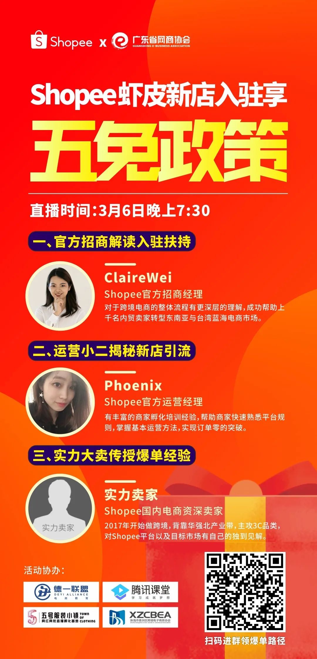 3月6日19:30,廣東省網(wǎng)商協(xié)會、Shopee聯(lián)合開展線上課堂,戰(zhàn)“疫”出海東南亞,并邀請實力賣家分享蝦皮經(jīng)驗!意在幫助內(nèi)貿(mào)賣家轉(zhuǎn)型東南亞與臺灣藍海電商市場!