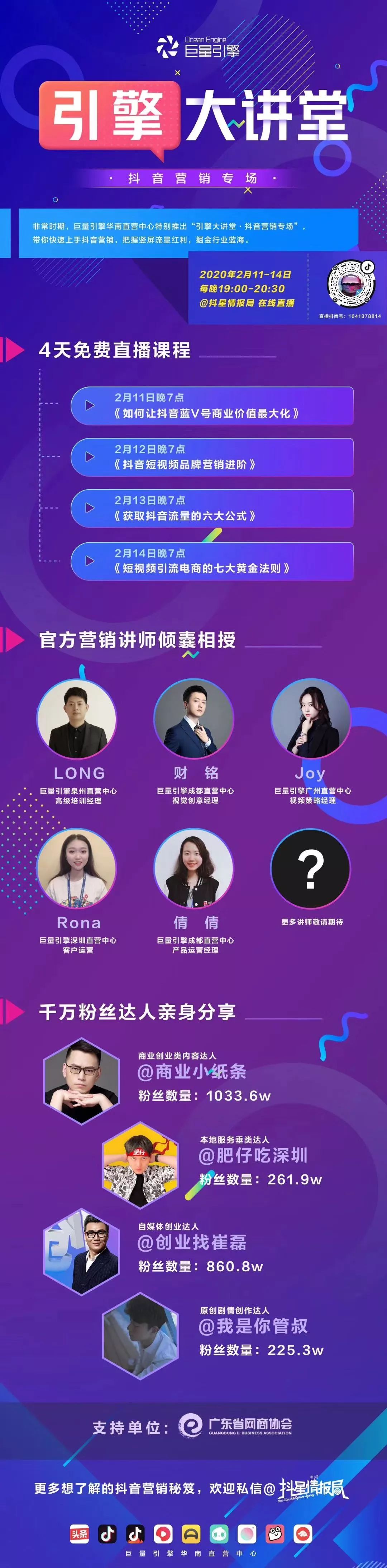 ![]() 新冠肺炎疫情蔓延以來,各行各業(yè)面臨著巨大的考驗(yàn),疫情防控造成了經(jīng)濟(jì)的暫時(shí)困難 ,但也孕育著新的機(jī)遇和發(fā)展空間 ,生產(chǎn)生活方式線上化就是最顯著的趨勢(shì)之一。 廣東省網(wǎng)商協(xié)會(huì)聯(lián)手有贊、快手、抖音、微盟、YY、一件、美迪電商教育等會(huì)員單位推出多個(gè)在線內(nèi)容,希望能助力企業(yè)突破經(jīng)營困境,重塑增長(zhǎng)~