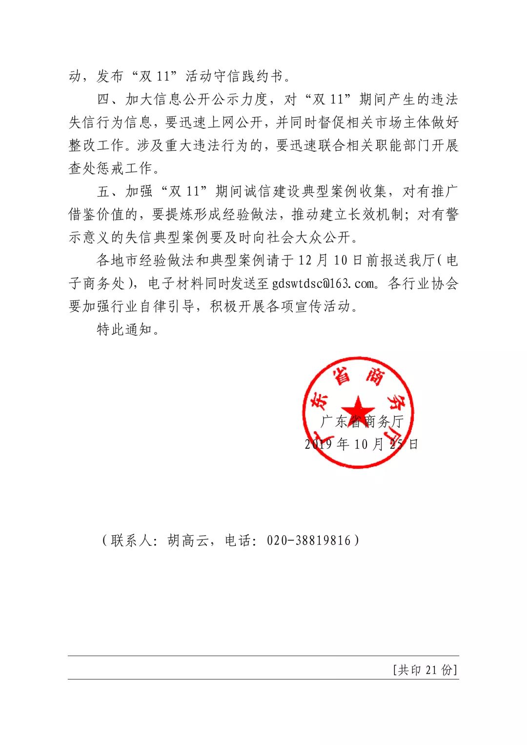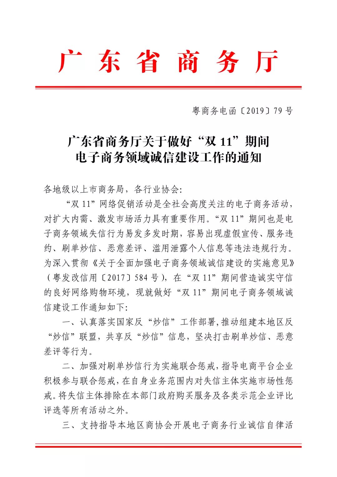 【通知】廣東省商務(wù)廳關(guān)于做好“雙11”期間 電子商務(wù)領(lǐng)域誠(chéng)信建設(shè)工作的通知