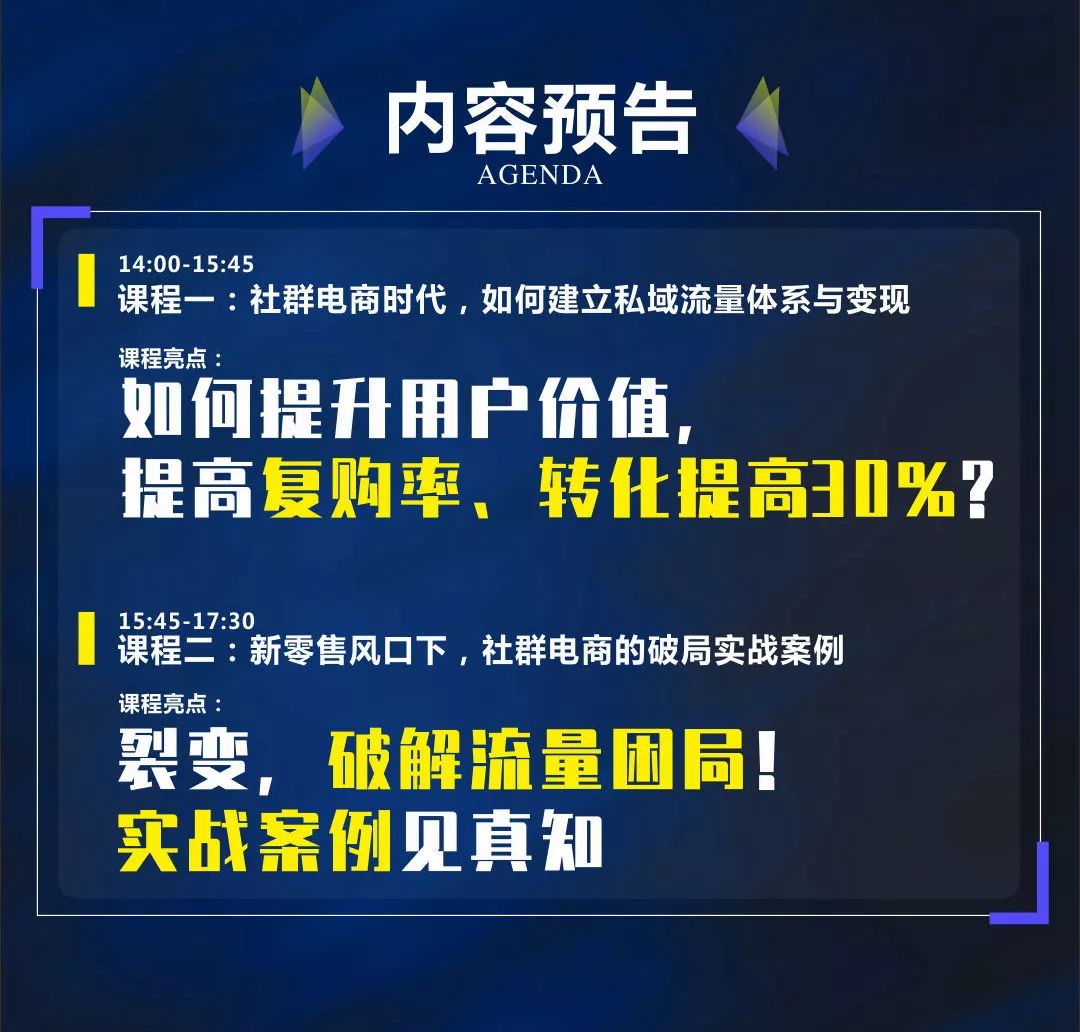 ![]() ![]() 互聯(lián)網(wǎng)已經(jīng)成就了太多的人,太多的企業(yè),電商是當(dāng)下互聯(lián)網(wǎng)世界當(dāng)中毋庸置疑的一方霸主,但是,電商也會(huì)遇到瓶頸,也會(huì)有乏力的時(shí)候,以現(xiàn)在的情況來說,電商平臺(tái)對(duì)于流量的獲取就已經(jīng)變得越來越難,開辟新的市場(chǎng)和新的電商模式是一個(gè)很大的挑戰(zhàn)。 在新消費(fèi)時(shí)代,消費(fèi)者的信息接收極度碎片化,傳統(tǒng)的流量獲取方式成本高企,流量轉(zhuǎn)化率也越來越低,流量獲取困局是制約企業(yè)新零售轉(zhuǎn)型升級(jí)的最大痛點(diǎn)。借助微信平臺(tái)的巨大流量,更高效智能的完成流量的獲取和轉(zhuǎn)化,以用戶為中心,大數(shù)據(jù)賦能的精細(xì)化運(yùn)營已日益成為企業(yè)的核心競(jìng)爭力,但該如何通過數(shù)字化運(yùn)營建立口碑,把流量變成留量? 2019 IEBE 新消費(fèi)生態(tài)解痛峰會(huì),下午閉門B學(xué)堂,解你轉(zhuǎn)化之痛! ![]() ![]() 課程一 授課講師:賣客星球 創(chuàng)始人 廖兵(金光) 中歐工商管理學(xué)院、清華大學(xué)經(jīng)管學(xué)院MBA客座教授、前阿里大客戶部總監(jiān)、“淘品牌”締造者 社群電商時(shí)代,如何建立私域流量體系與變現(xiàn) 基于微信平臺(tái)的社群電商自帶的社交屬性,承載著對(duì)用戶導(dǎo)入、用戶粘性、用戶開發(fā)、二次營銷的巨大商業(yè)機(jī)會(huì),品牌商家如何順勢(shì)而為,建立以用戶運(yùn)營為核心的私域流量體系,是商家必須積極面對(duì)的新課題。 ![]() 課程二 授課講師:賣客星球 產(chǎn)品負(fù)責(zé)人 天一 13年行業(yè)經(jīng)驗(yàn)、產(chǎn)品與廣告兩棲專家、微信生態(tài)商業(yè)化產(chǎn)品前瞻者 新零售風(fēng)口下,社群電商的破局實(shí)戰(zhàn)案例 微信的崛起和新零售的風(fēng)口下,商家如何借助移動(dòng)互聯(lián)網(wǎng)技術(shù)進(jìn)行粉絲運(yùn)營裂變和門店導(dǎo)購升級(jí)?如何通過打通線上線下營銷通路來破解流量困境?讓我們通過一系列商家的實(shí)戰(zhàn)案例,來為大家逐一解讀實(shí)戰(zhàn)真知。 ![]() ![]() ![]() ![]() ![]() ![]() ![]() ![]() ![]() ![]() ![]() |