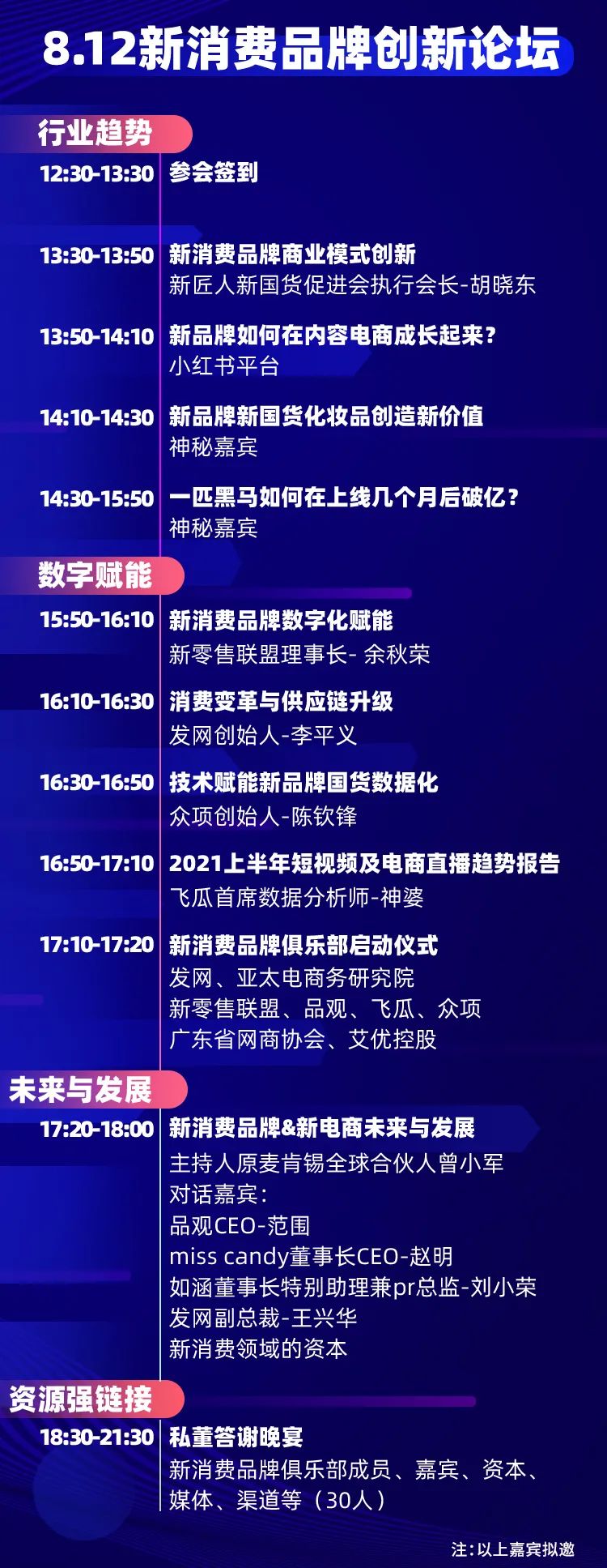 屆時(shí),來(lái)自吳曉波頻道、小紅書、新零售聯(lián)盟、發(fā)網(wǎng)、眾項(xiàng)、品觀、飛瓜數(shù)據(jù)、MISS CANDY、如涵等數(shù)位嘉賓將在論壇上通過(guò)8場(chǎng)主題演講、1場(chǎng)圓桌論壇分享他們對(duì)于新趨勢(shì)的洞察和創(chuàng)新實(shí)踐。并展望在5G網(wǎng)絡(luò)、大數(shù)據(jù)、VR等新技術(shù)的影響下,新消費(fèi)市場(chǎng)上正在發(fā)生、即將發(fā)生的新趨勢(shì)。