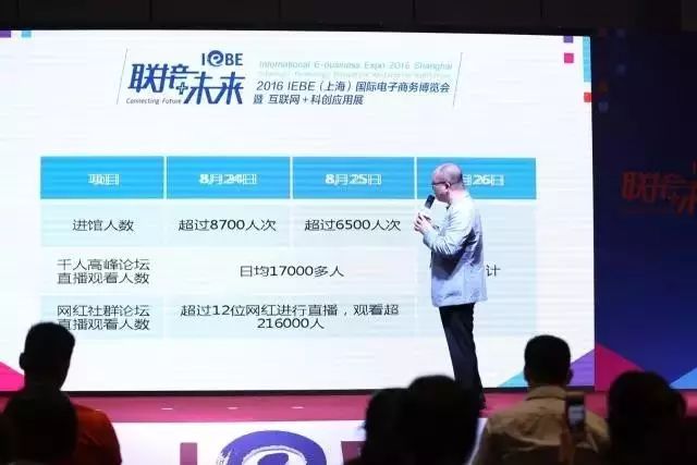 IEBE組委會主任 黃子榮總結(jié)展會情況 8月26日,國內(nèi)電商專業(yè)展第一品牌2016IEBE(上海)國際電子商務(wù)博覽會暨互聯(lián)網(wǎng)+科創(chuàng)應(yīng)用展在上海虹橋國家中心正式閉幕。 在三天的展期內(nèi),Amazon、Google、wish、Kilimall等全球30個國家和地區(qū)的電商代表企業(yè)悉數(shù)參展,約2萬專業(yè)觀眾到場參觀,由舍恩伯格和韋思岸領(lǐng)銜演講的“智享生態(tài) 聯(lián)接未來”高峰論壇線上直播觀眾人數(shù)超過8萬人,寧波、內(nèi)蒙等地政府、歐美工商聯(lián)等商會組織組團參展、網(wǎng)紅社群論壇超過12位網(wǎng)紅進行直播,觀看超216000人…… 在整個互聯(lián)網(wǎng)行業(yè)缺乏新鮮感和亮點的2016年,IEBE在上海展現(xiàn)了電商行業(yè)依然強勁的活力和電商未來依然值得期待的巨大想象空間。 而IEBE自身不僅藉此完成“雙展聯(lián)動”的布局,也在向著互聯(lián)網(wǎng)生態(tài)展的進化道路上邁出堅實一步。