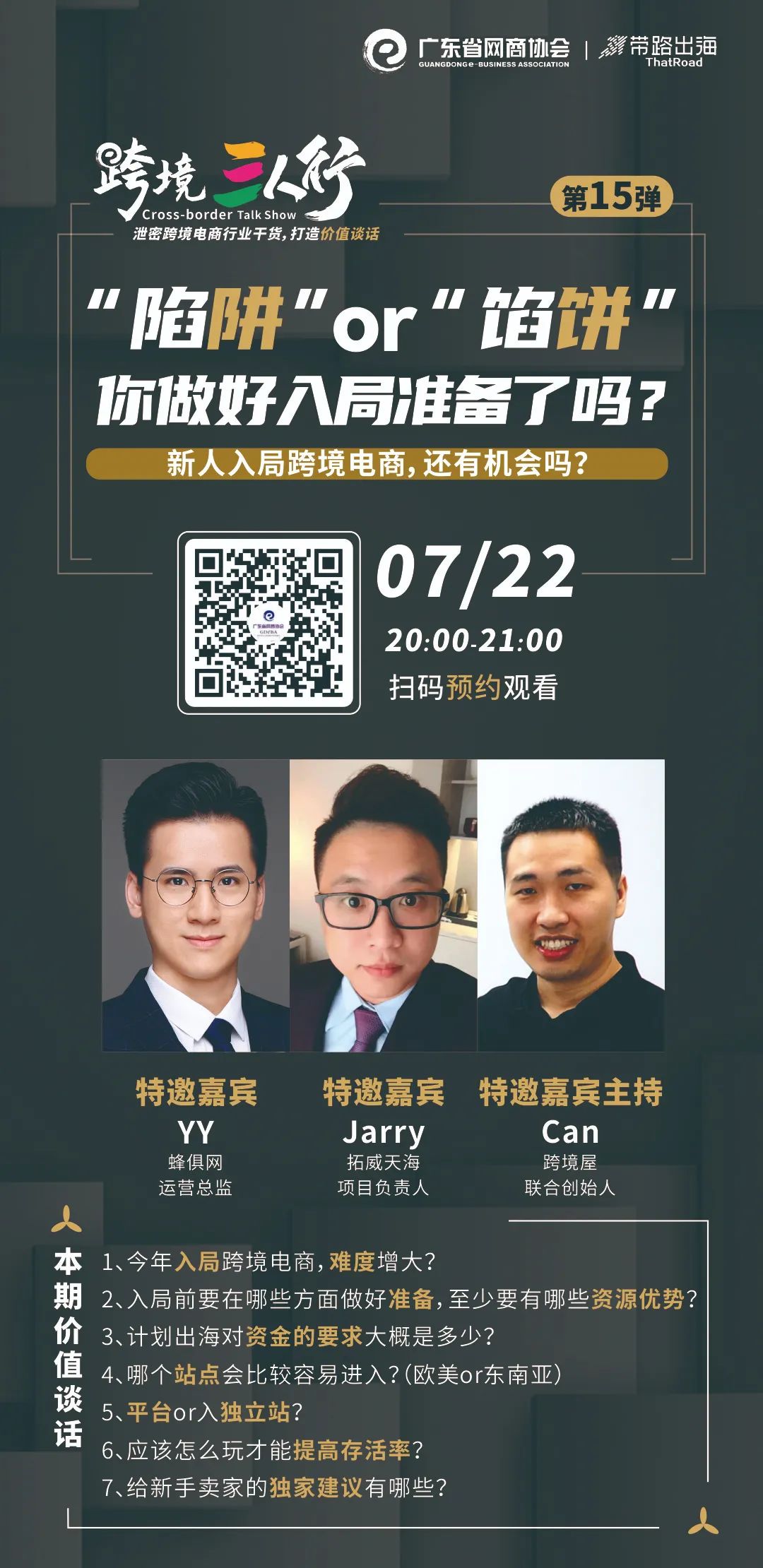 明晚(7月22日)20:00,來(lái)廣東省網(wǎng)商協(xié)會(huì)直播間,由三位真實(shí)跨境賣(mài)家現(xiàn)場(chǎng)直播,暢談從跨境小白到爆品操盤(pán)手的“血與淚”經(jīng)歷??梢話叽a進(jìn)去參與討論哦!