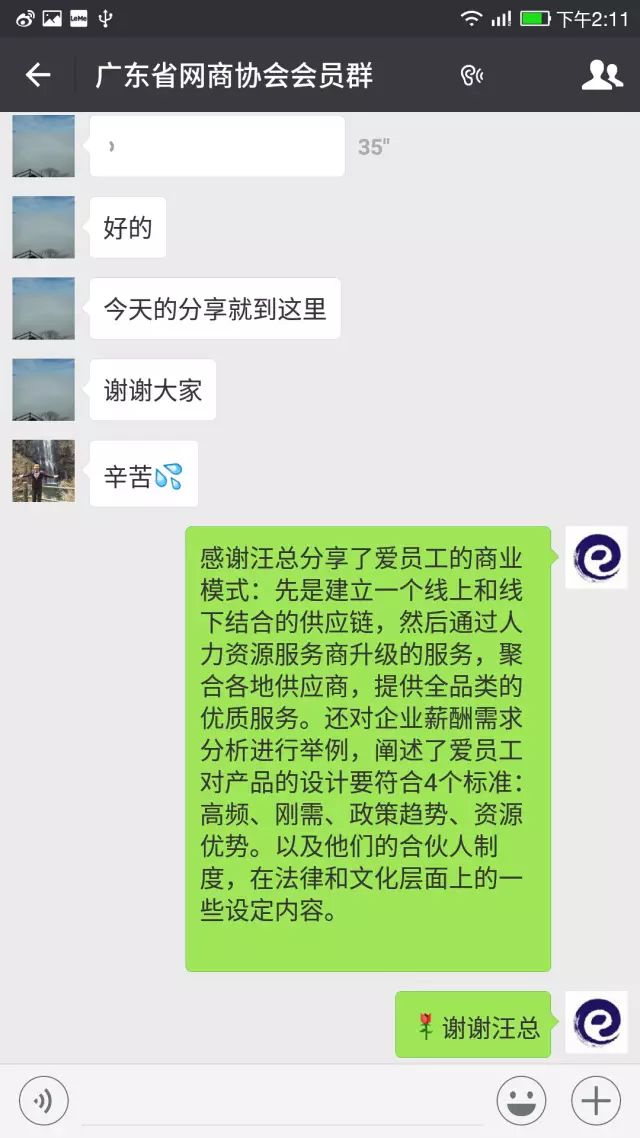 ![]() 12月7日20:00,由廣東省網(wǎng)商協(xié)會主辦的,微信群分享活動(第二期)成功舉辦!本期活動的分享嘉賓是愛員工聯(lián)合創(chuàng)始人汪鋒。汪總在廣東省網(wǎng)商協(xié)會微信會員群中跟大家分享了愛員工的歷史和轉(zhuǎn)型、商業(yè)模式和盈利模式、對產(chǎn)品的選擇以及愛員工合伙人制度的創(chuàng)新性。 由于本系列活動 僅對廣東省網(wǎng)商協(xié)會會員開放 不能現(xiàn)場參加的朋友不用難過 小編已經(jīng)為大家整理好重點 ![]() 愛員工的簡介 廣州合摩計算機(jī)科技有限公司成立于2014年10月,以前是一家定位于為中小企業(yè)提供HR-saas服務(wù)的互聯(lián)網(wǎng)公司,經(jīng)過一年多的努力,發(fā)現(xiàn)這條路在國內(nèi)非常難走,所以,于今年年初,進(jìn)行了一次轉(zhuǎn)型,現(xiàn)在是一家定位于人力資源服務(wù)供應(yīng)鏈平臺的互聯(lián)網(wǎng)公司?,F(xiàn)在,在愛員工人力資源服務(wù)平臺上,聚合了全國各行業(yè)的優(yōu)質(zhì)的人力資源服務(wù)商,我們在通過互聯(lián)網(wǎng)幫助傳統(tǒng)人力資源服務(wù)商互聯(lián)網(wǎng)升級的同時,為服務(wù)商所服務(wù)的企業(yè)客戶提供優(yōu)質(zhì)的、低成本的以及創(chuàng)新性人力服務(wù),比如,人事外包、員工福利、薪酬稅優(yōu)、工資保理、政務(wù)申領(lǐng)等服務(wù)。愛員工現(xiàn)在員工有100人,已經(jīng)獲得了多輪風(fēng)險融資,現(xiàn)在每月的資金流水已經(jīng)超過3億,公司已經(jīng)進(jìn)入快速發(fā)展期。 愛員工的轉(zhuǎn)型歷程 初期的愛員工的商業(yè)模式是:免費提供中小企業(yè)HR-SAAS工具,希望先通過增加中小企業(yè)對工具的黏性,然后再通過社保、福利等等服務(wù)收費。但發(fā)現(xiàn)只是一廂情愿,因為中小企業(yè)的決策周期、流程太長,而且,信息化工具不是中小企業(yè)的剛需。 第一次轉(zhuǎn)型 從合法合規(guī)的角度上看,社保是每個企業(yè)都要去繳納的,所以第一次轉(zhuǎn)型策略從社保免費切入,雖然取得了成效,但是中小企業(yè)相對業(yè)務(wù)量較小,而且拓展周期長,速度太慢。