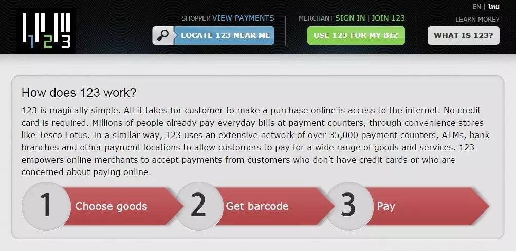 2C2P投放32萬(wàn)處線下支付點(diǎn) #東南亞# #電子支付# 東南亞電子支付公司2C2P宣布為其“123 payment solution| (123支付解決方案)”投放了32萬(wàn)處線下支付點(diǎn),用戶可以使用現(xiàn)金或者其他替代方式支付線上訂單。用戶使用“123”線上購(gòu)物時(shí)獲得一個(gè)條形碼,可以打印出來(lái)或者通過(guò)手機(jī)掃描,然后拿到線下點(diǎn)支付,付款渠道包括在連鎖零售、代理機(jī)構(gòu)、ATM的現(xiàn)金支付以及互聯(lián)網(wǎng)銀行和手機(jī)銀行等。