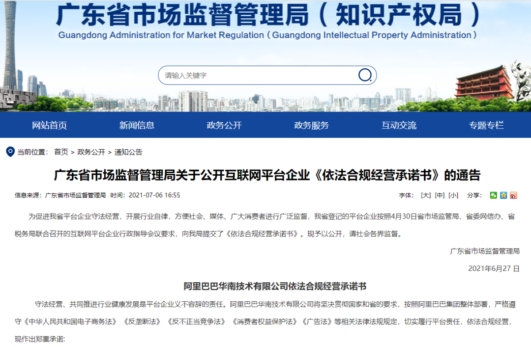 公開!廣東省41家互聯(lián)網(wǎng)平臺企業(yè)《依法合規(guī)經(jīng)營承諾書》由省市場監(jiān)管局公布作者:網(wǎng)商小編網(wǎng)址:http://amr.gd.gov.cn/zwgk/tzgg/content/post_3339529.html