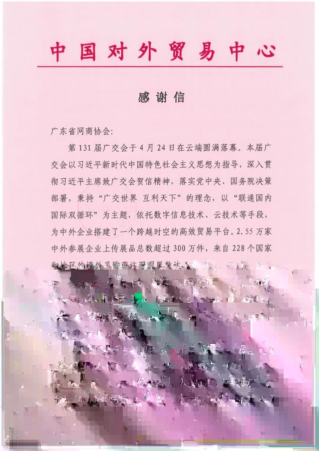 近日,我會收到中國對外貿(mào)易中心的感謝信。