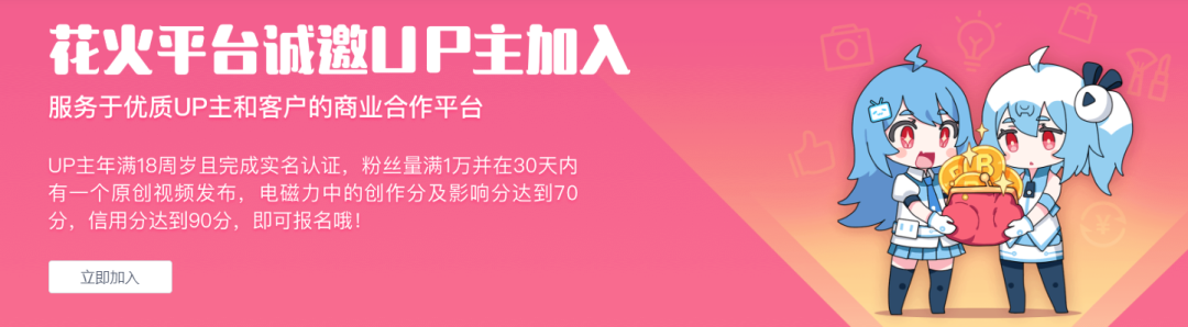 目前,花火UP主、MCN入駐通道已于7月7日22:00全面開(kāi)啟。品牌主、代理商入駐和投放通道將于7月17日00:00起正式開(kāi)放。2020年8月1日前,花火將限時(shí)免收平臺(tái)服務(wù)費(fèi)。(花火平臺(tái)在收費(fèi)時(shí)面向廣告商,而不是UP主)