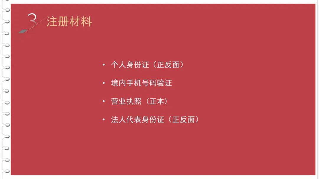 步驟三:加入已有企業(yè)賬號(hào)或創(chuàng)建新企業(yè)賬號(hào),成為境內(nèi)采購(gòu)商 創(chuàng)建企業(yè)賬號(hào)主要資料: 1. 營(yíng)業(yè)執(zhí)照正本掃描件。 2. 法人代表身份證掃描件(正反面)。